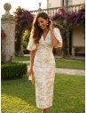 El Vestido PATTY FLOR es una joya hecha prenda. Diseñado para la invitada que busca elegancia atemporal, este modelo destaca por la riqueza de su tejido y un patrón estudiado para potenciar la figura femenina. Es la opción predilecta para bautizos, comuniones o bodas de día donde el protocolo exige ir impecable y luminosa.
