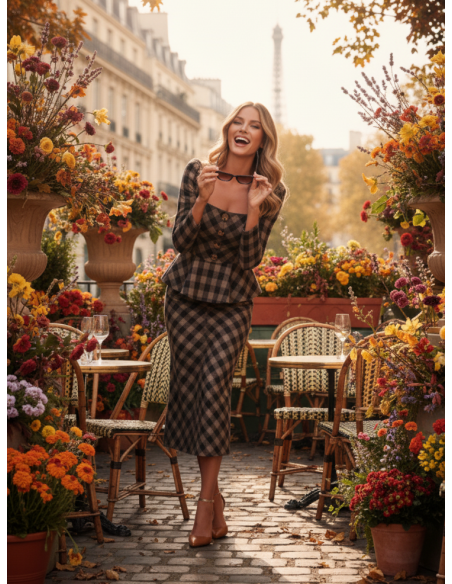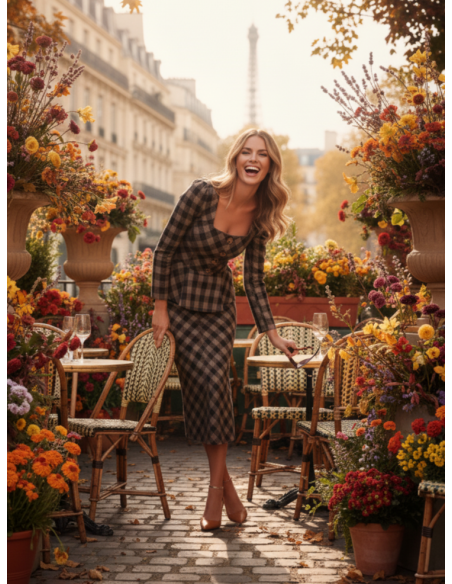 Descubre la sofisticación perfecta con nuestro modelo PRAGA en elegante estampado de cuadros. Este conjunto de fiesta de dos piezas es la elección ideal para lucir distinguida y versátil en cualquier evento especial.