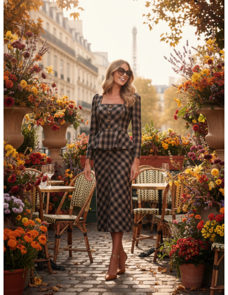 Detalles de diseño: El top peplum con escote cuadrado marca la cintura y estiliza la figura de forma muy favorecedora. Las mangas largas abullonadas aportan elegancia y romanticismo, mientras que la botonadura frontal decorativa añade un toque distintivo. La falda midi con corte evasé crea movimiento y feminidad. El estampado de cuadros aporta sofisticación británica y versatilidad. La ventaja de ser un conjunto de dos piezas es que puedes combinar las prendas por separado.