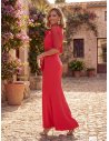 El Vestido Largo IMPERIO es la demostración perfecta de cómo la elección del tejido define el diseño. Confeccionado íntegramente en España, este modelo juega con las texturas para ofrecer lo mejor de dos mundos: la espectacularidad de la alta confección y la comodidad que necesitas para disfrutar del evento.