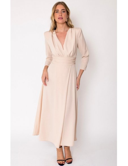 Tejido: Crepé fluido con gran caída (tono arena / nude).