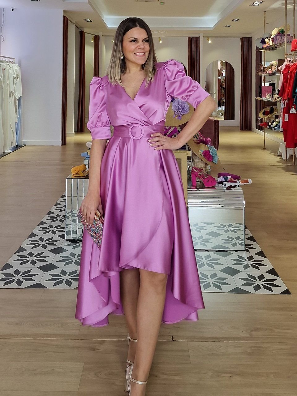 No solamente es cómodo de lucir, sino que a la hora de complementar, este modelo es una fantasía, pues admite casi cualquier tono de zapatos, bolso, pendientes o tocados y diademas. Visita nuestra sección de complementos y amarás crear tu propio outfit de invitada ideal. La más coqueta.